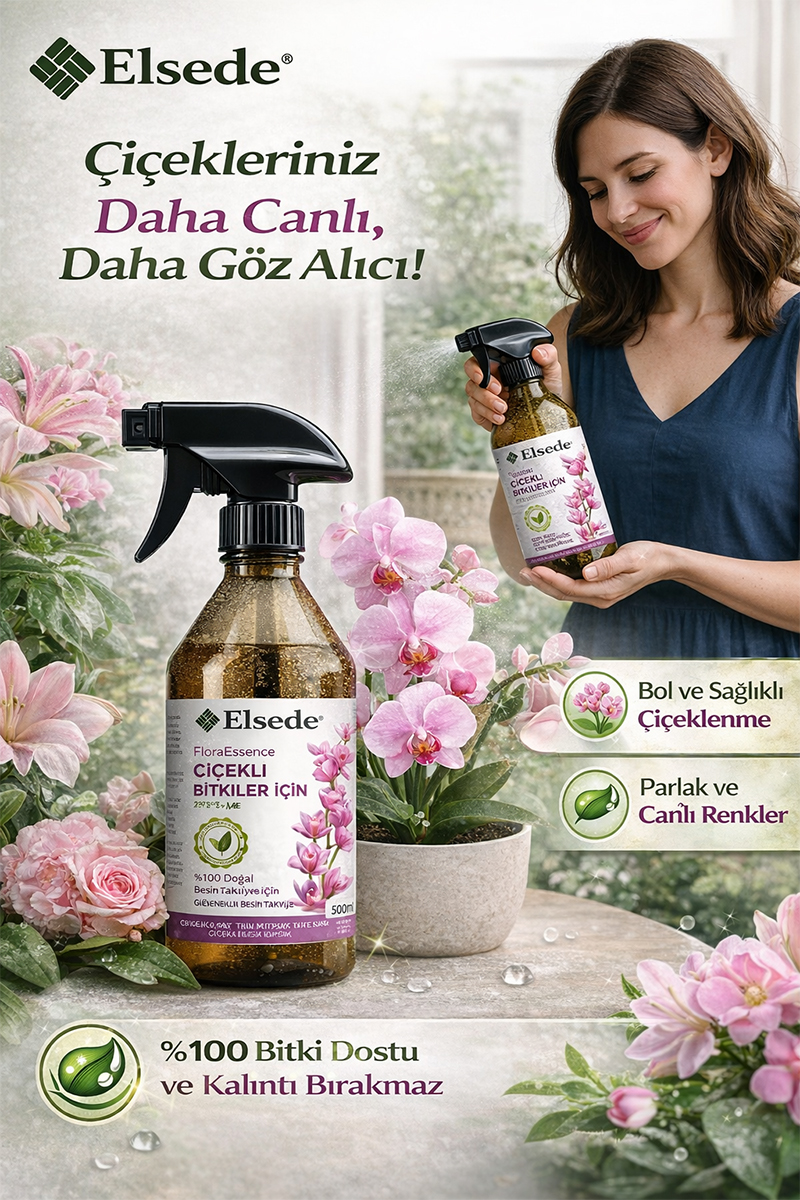 Elsede FloraEssence, Çiçek açan tüm bitki türleri için özel ihtiyaçları göz önünde bulundurularak geliştirilmiş,  Sıvı Bitki Besinidir. Bitkilerin doğal gelişim ritmine uygun bu özel formül; kontrollü büyümeyi desteklerken, kök çürümesi ve tuz birikimi gibi yaygın sorunların önüne geçmeye yardımcı olur.